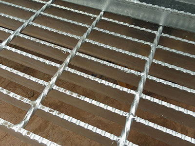 熱鍍鋅格柵板是由負載扁鋼和橫桿按一定間距經(jīng)緯排列,在高壓電阻焊機上焊接而成原板,經(jīng)切割、切口、開孔、包邊等工序深加工而成客戶要求的成品。